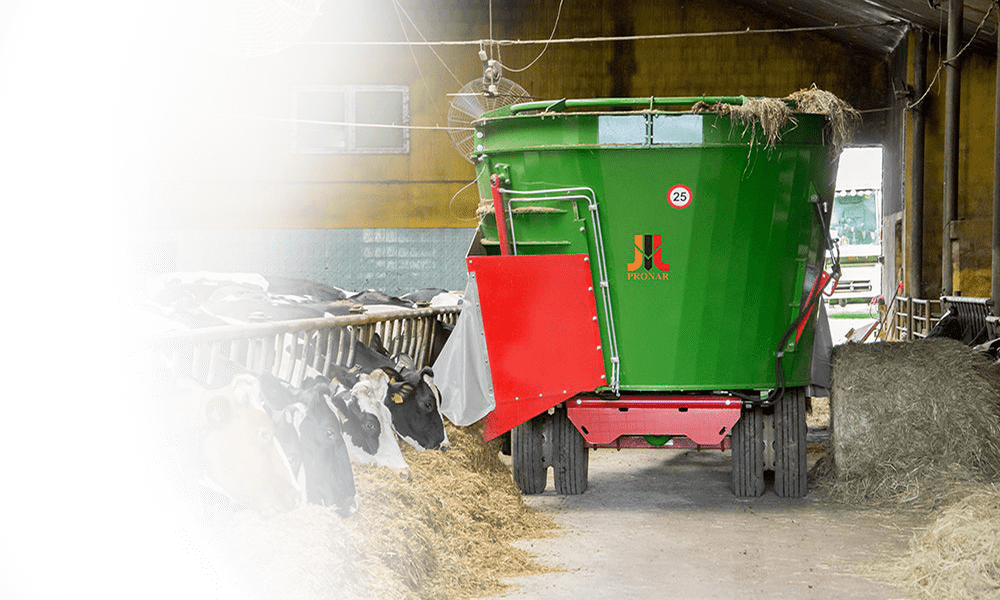 Кормораздатчик PRONAR DVMP – 12/14/16/18 - Задача данного кормораздатчика является дробление и подача корма в форме так называемого TMR – полностью смешанной дозы. Принятие полноценной и питательной дозы ограничивает риск заболеваний пищеварительной системы, что непосредственно влияет на удой молока.Серия DVMP включает в себя следующие модели: DVMP-12, DVMP-14, DVMP-16 и DVMP-18, вместимостью 12, 14, 16 и 18 м3 соответственно. Такие объемы вынудили применение двух перемешивающих шнеков в инновационной конструкции. Конструкция двух перемешивающих шнеков, толщиной 15 мм, обеспечивает правильное смешивание по объему и полноценности кормов.Высокое качество производства обеспечивает долголетнюю эксплуатацию и надежную работу, а богатое оснащение и элементы дополнительного оборудования, позволяет приспособить машины для каждого хозяйства.